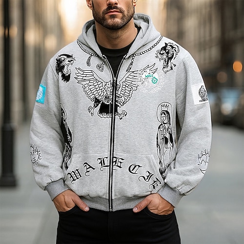 Per uomo Grafico Aquila Felpa con Cappuccio Moda Quotidiano Casual Manica Lunga Con Cappuccio Vacanza Feste Abbigliamento casual alla moda Festival Nero Grigio Con zip Tasca Stampa Primavera Autunno