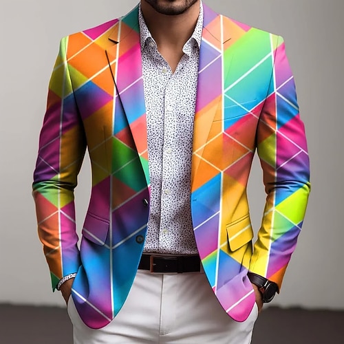 Herren Geometrisch Blazerjacke Mantel Bequem Atmungsaktiv Künstlerisch Lässig Täglich Party 3D-Druck Knöpfe Mehrere Taschen Frühling Herbst Winter Fallendes Revers Langarm Rote Purpur Grün