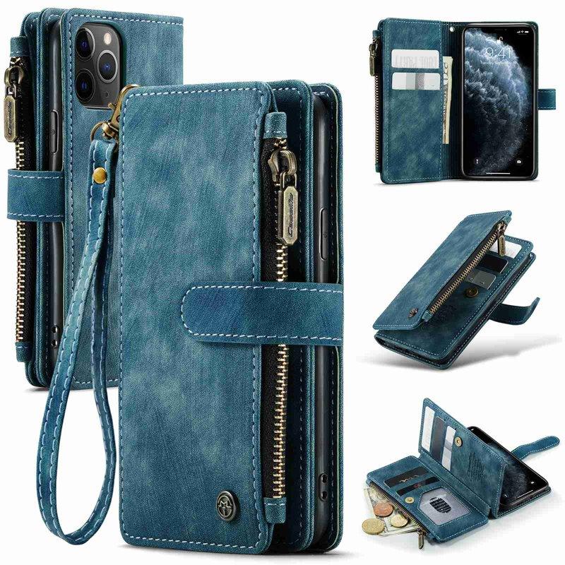 CASEME C30 Plånboksfodral för iPhone 11 Pro med Rem - Blå Konstläder