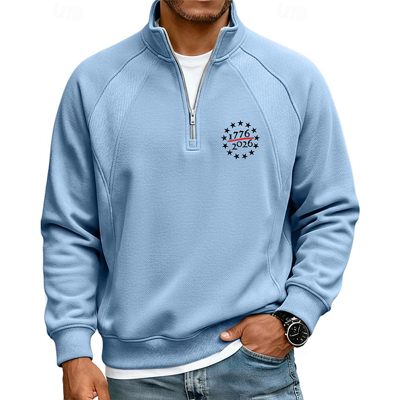 Men's Letter Printed Zip Polo Shirts Golf Shirt Long Sleeve Polo Shirts Collared Shirts Vintage Casual Outdoor Street Dailywear 3D Print Quarter Zip Polo Spring Fall Winter Black Blue Green