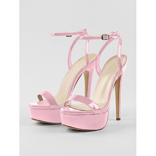 sandali con plateau in vernice nera con cinturini alla caviglia con lacci – scarpe sexy con tacco alto da donna per club e ballo