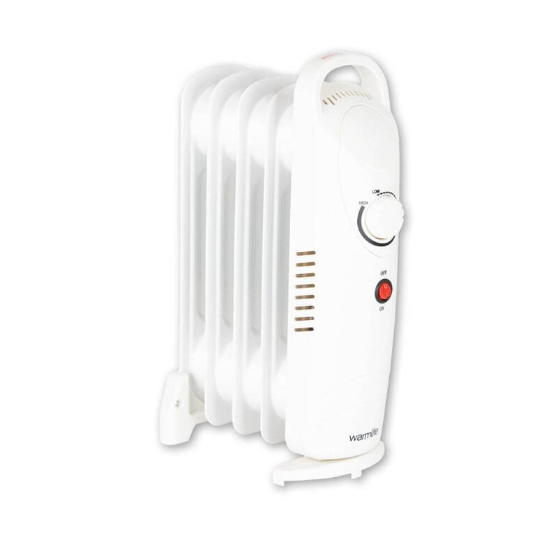 Warmlite 5 Fin Oil Filled Radiator, 650W, Adjustable Thermostat, Overheat Protection, Compact Portable Design - White, WL43002YW