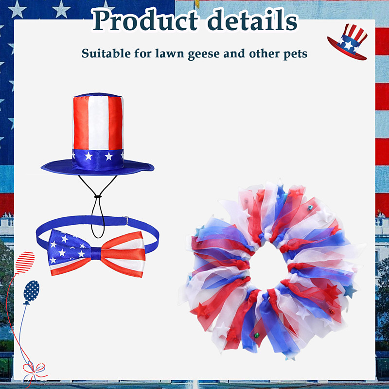4th of July Goose Clothes Outfit, 3Pcs Patriotic Pet Costume Set with Uncle Sam Hat, Bow Tie, and Tutu Skirt, American Flag Duck Clothes for Independence Day, Memorial Day