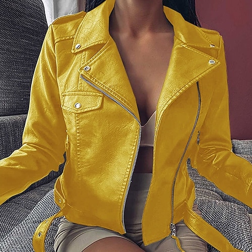 Per donna Giacca in Ecopelle Giacca da Biker Caldo Confortevole Cerniera Bottoni Casual Tinta unica Vacanza Streetwear Casuale Abbigliamento quotidiano Regolare Collo ripiegato Vestibilità regolare