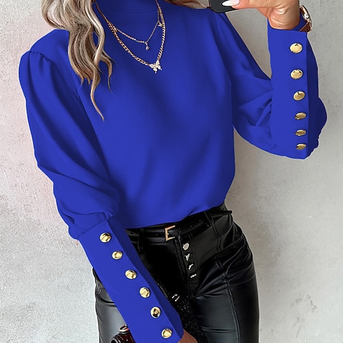 Per donna Blusa Tinta unica Elegante Essenziale Casual Manica Lunga Collo Alto Top Regolari Quotidiano Ferie Bottoni Nero Bianco Rosso Blu Estate Autunno