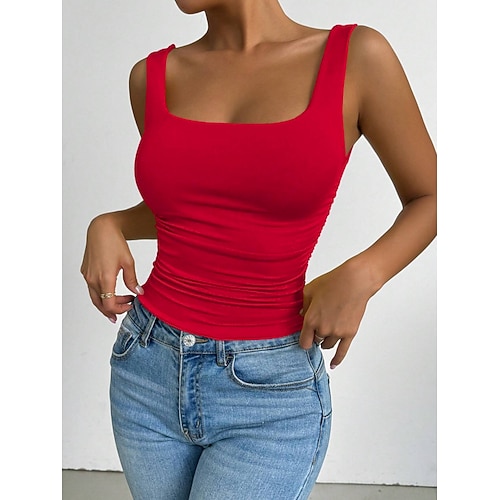 Per donna Canotta a canotta Tinta unica Elegante Casual Senza Maniche Collo quadrato Top Regolari Quotidiano Bianco Giallo Vino Rosso Blu Reale Estate
