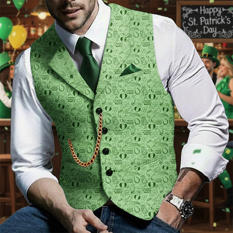 Men's Vest Waistcoat Gilet Outdoor Saint Patrick Day Fashion Streetwear Spring Fall Buttons Cotton Breathability Fashion Graphic Shamrock Single Breasted Turndown Regular Fit Green Vest
