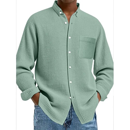 Per uomo Camicia Camicia a nido d'ape Camicia casual Camicia con Bottoni Blu Nero Bianco Vino Blu marino Manica Lunga Tinta unica Bavero Casuale Quotidiano Con tasca esterna Abbigliamento Maglieria