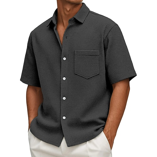Per uomo Camicia Camicia a nido d'ape Tessuto Camicia casual Camicia con Bottoni Nero Bianco Vino Blu marino Azzurro cielo Manica Corta Semplice Bavero Casuale Quotidiano Tasca Abbigliamento Moda