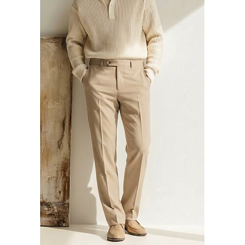Uomo Cotone Lino Pantaloni Eleganti Pantaloni casual Affari Matrimonio Moda Formale Classico Nero Borgogna Blu marino scuro Tinta unica Vestibilità su misura Lungo Inelastico