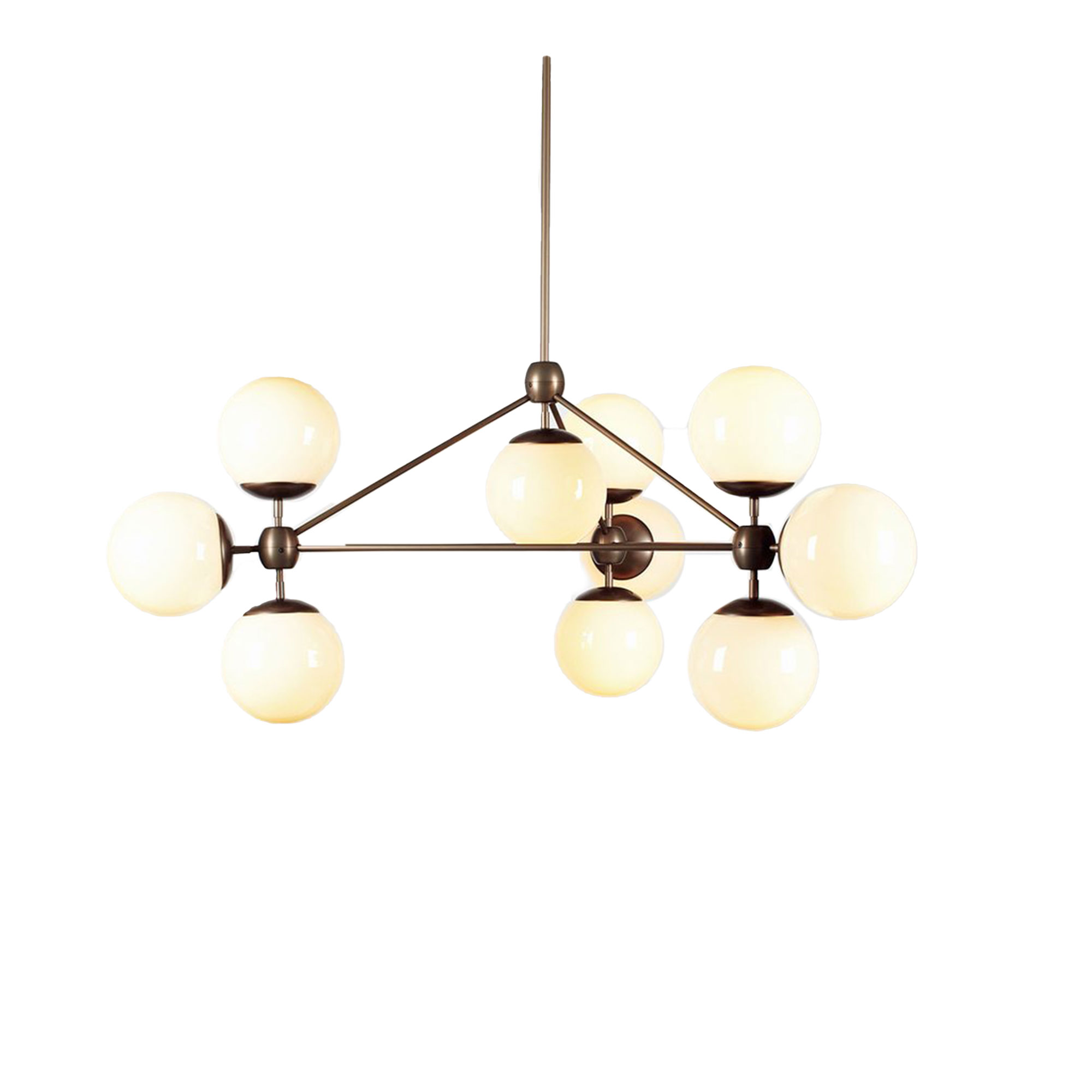 Roll & Hill - Modo Chandelier 10 Globes Mjölkfärgat glas, Brons - Takkronor - Jason Miller - Brons,Vit