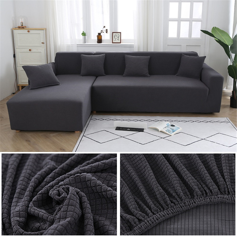 Stretch Sofa Cover Slipcover Jacquard Elastic Sectional Couch Armchair Loveseat 4 or 4 or 3 Seater Burgundy Red L Shape White Grey Black Plain Solid Color Soft Durable Washable(1 Free Cushion Cover)