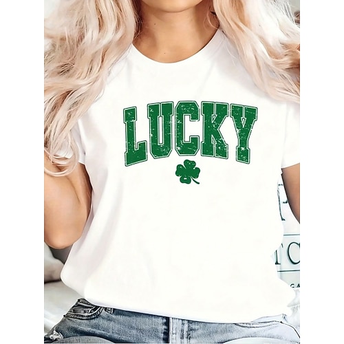 T-shirt da donna per il giorno di San Patrizio floreale elegante classico casual maniche corte scollo tondo top regolare stampa giornaliera nero bianco verde chiaro off-white estate primavera