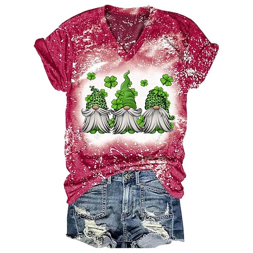 T-shirt da donna per il giorno di San Patrizio grafica shamrock vintage alla moda classica maniche corte scollatura a V tops regolari per uscite quotidiane stampa nera verde chiaro verde estate
