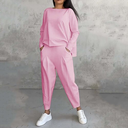 Per donna Set di tute e pullover Tuta da 2 pezzi Abiti da salotto con tasca Tinta unita Completo Abbigliamento Autunno Nero Bianco Palestra Corsa Fitness Leggero Traspirante Manica Lunga Sport