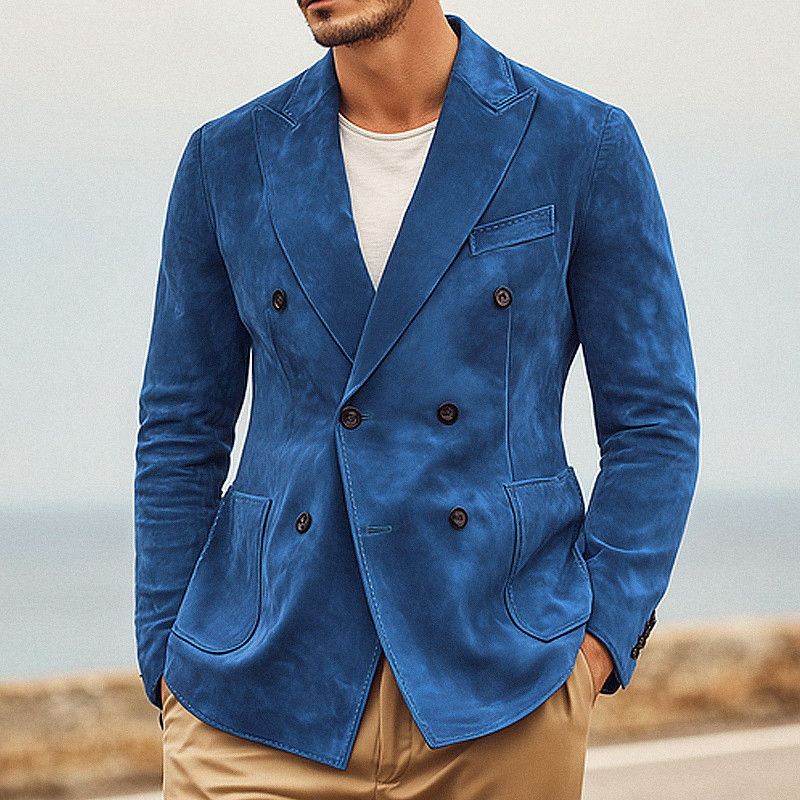 Men's Faux Suede Blazer Blazer Jacket Business Work Evening Party Elegant Warm Spring Fall Terylene Solid Color Double Breasted Blazer Blue