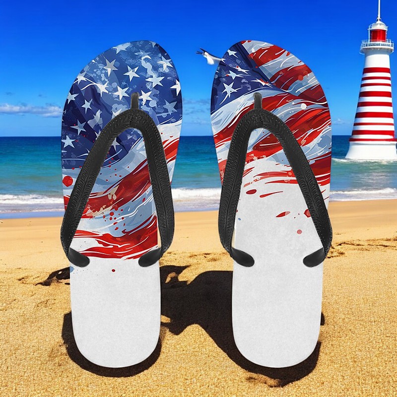Men's American Flag Flip-Flops – Patriotic Stars Stripes Sandals for Summer, Independence Day Beachwear