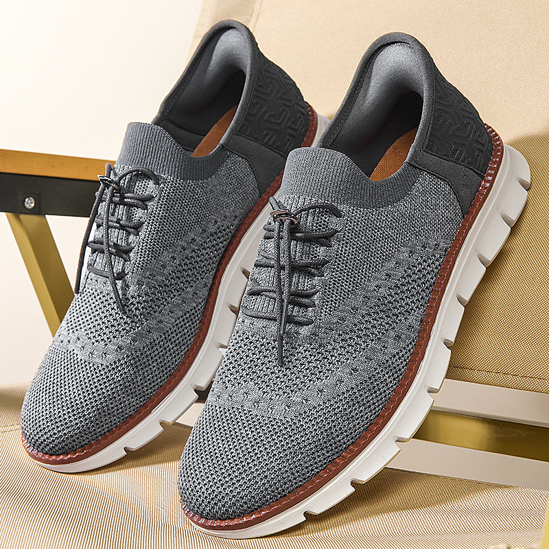 Men's Breathable Knit Oxford Sneakers – Lightweight Casual Shoes with Cowhide Leather Trim for Walking, Daily Wear and Travel