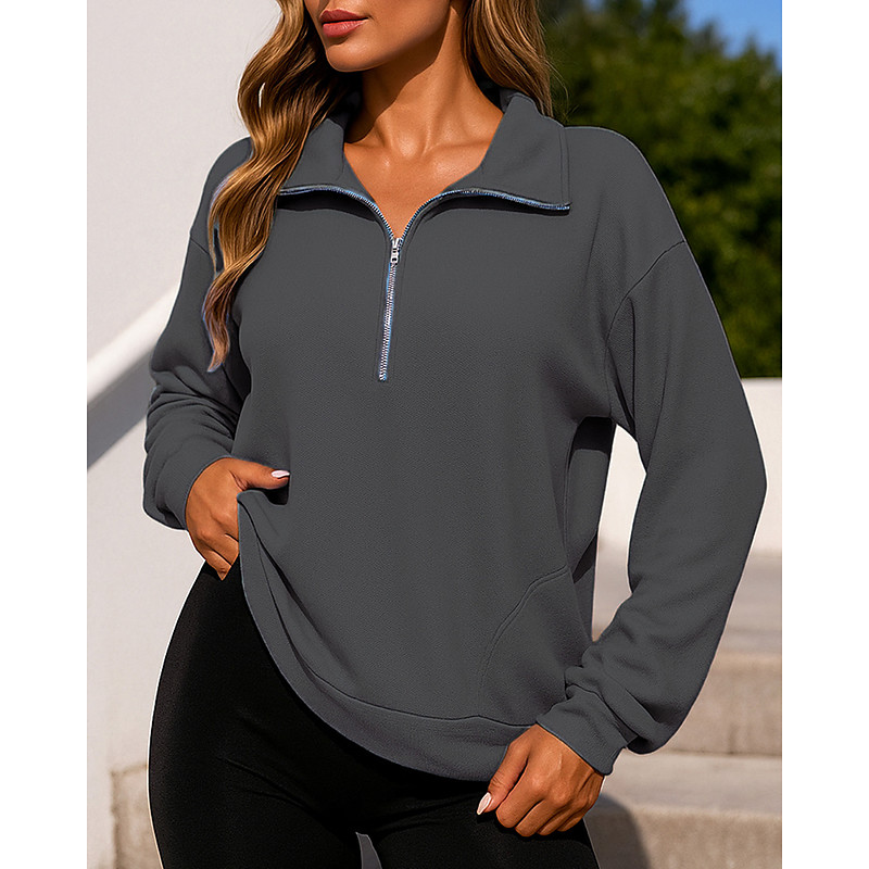 Women's Zip Up Sweatshirt Pullover Sweatshirt Long Sleeve Top Athleisure Fall Solid Colored Outdoor Travel Sports Sportswear Activewear Black White Pink