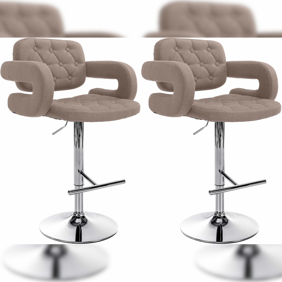 DELUKE 2er Set Barhocker BURID - Stoff Taupe 62x55x103 cm Silber | Barstuhl Höhenverstellbar Mit Lehne Drehbar Tresenhocker Tresenstuhl Kneipenhocker