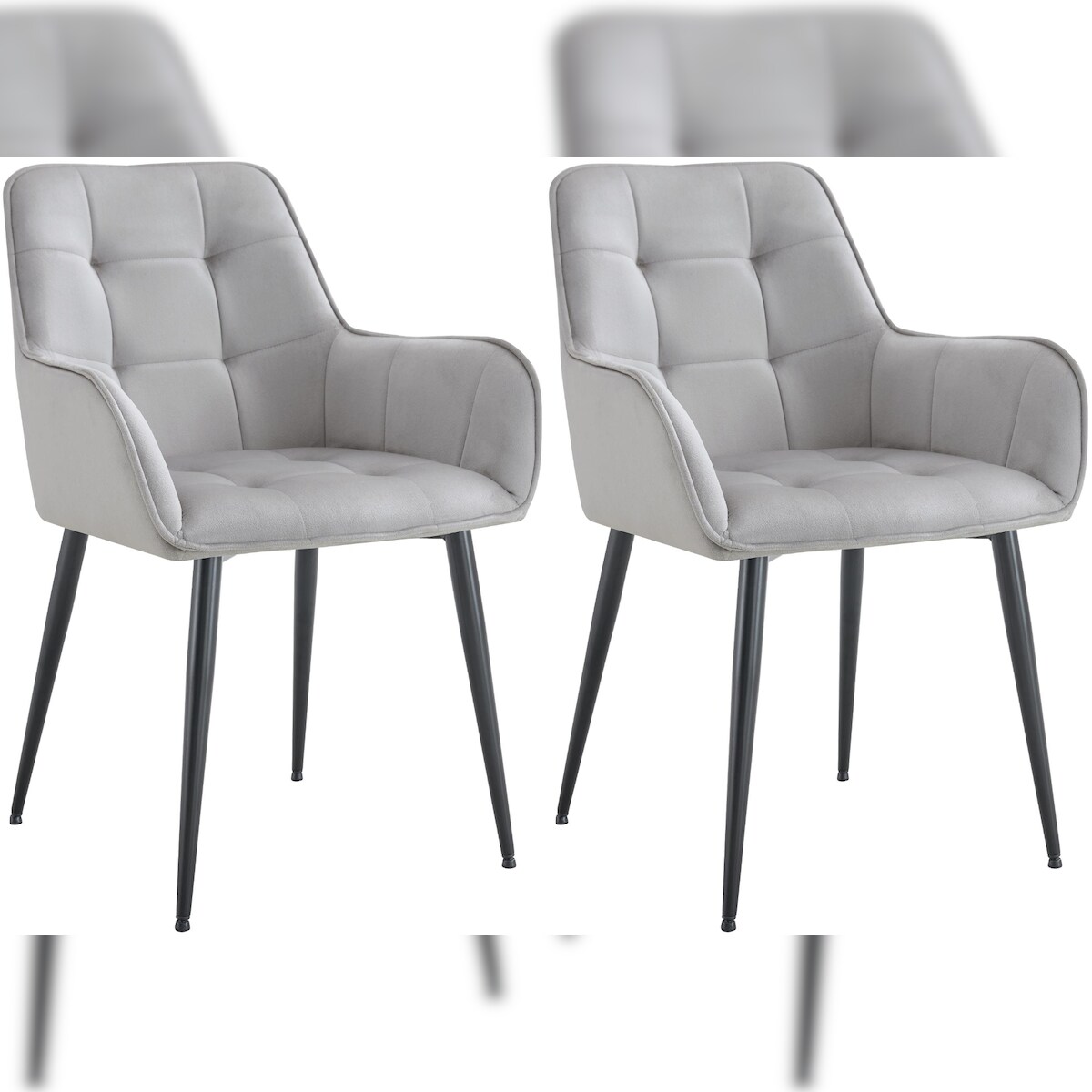 DELUKE 2er Set Esszimmerstuhl BOKEL - Samt Hellgrau 58x62x86 cm | Essstühle Esszimmerstühle Küchenstühle Wohnzimmerstühle
