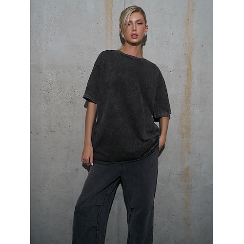 Per donna Maglietta Tinta unica Elegante Classico Casual Manica Corta Girocollo Top Regolari Quotidiano Sportivo Uscire Lavaggio vintage Blu Verde primavera Nero Verde militare Viola Estate Primavera