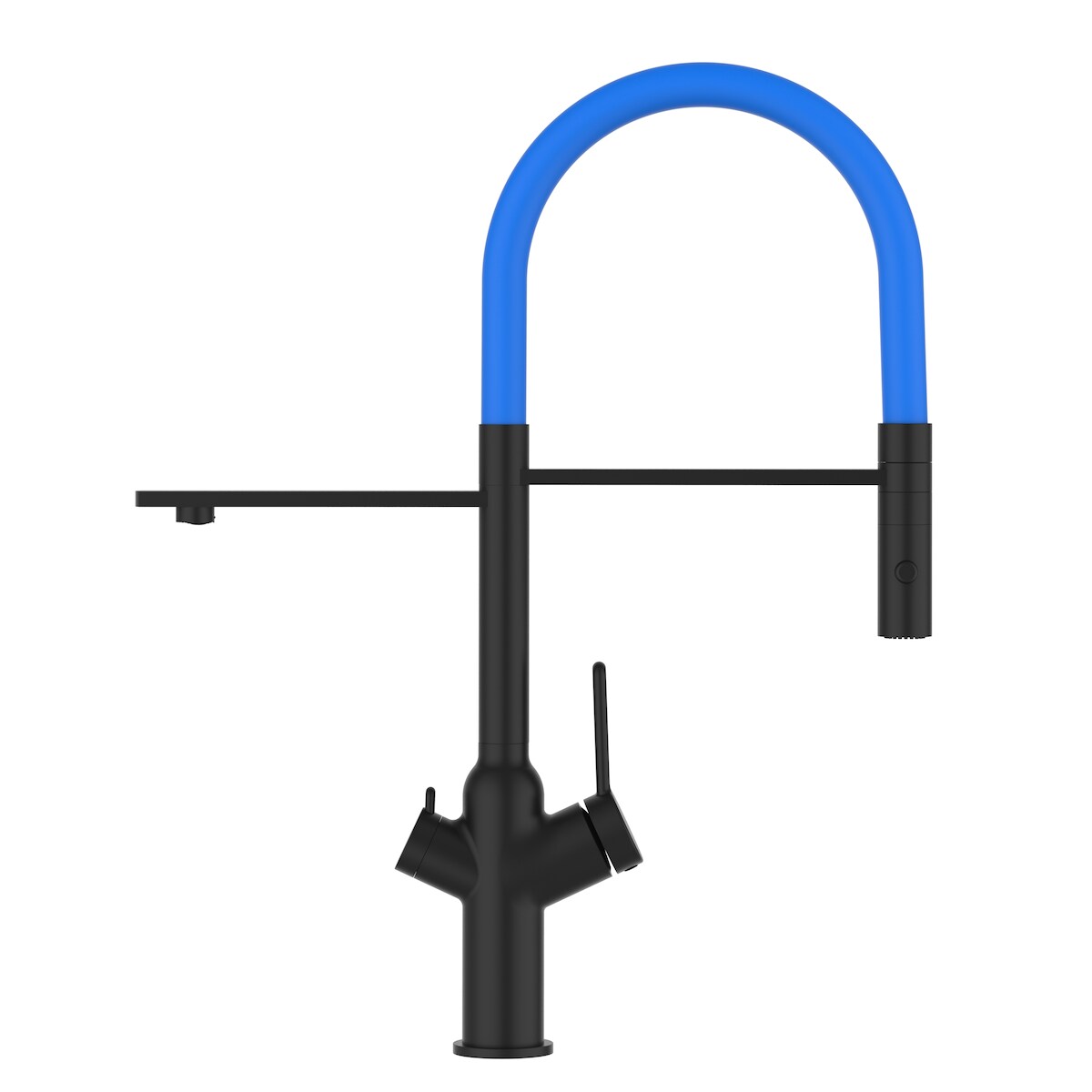 Vizio 3 Wege Wasserhahn Küchenarmatur Spültischmischer BOD, Schwarz Matt, mit 360° schwenkbarem Hellblau Auslauf und abnehmbare 2 strahl Handbrause