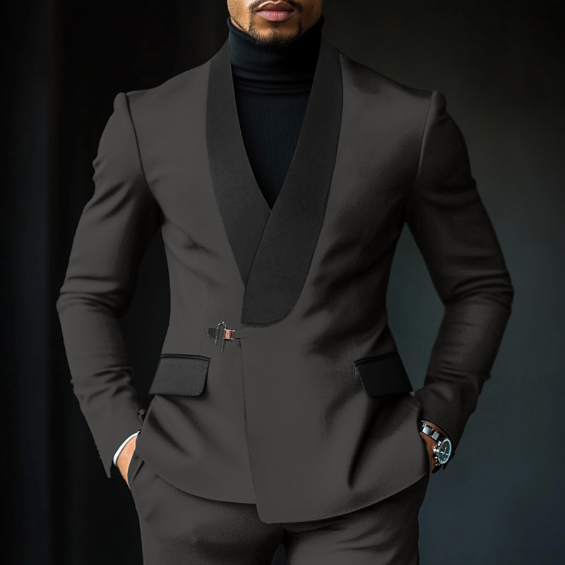 Men's Party Suits Shawl Lapel Royal Blue Dark Green Fashion WorkWear Solid Colored Standard Fit 2 Piece Single Breasted One-button