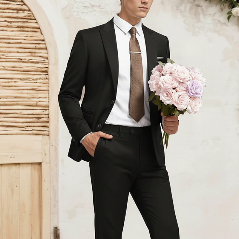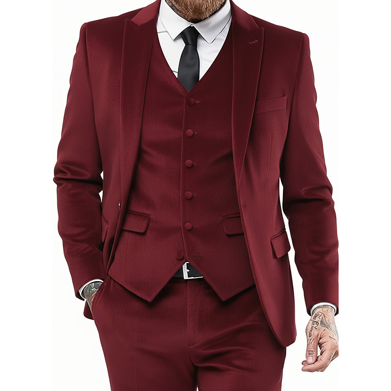 Men's Business Suits Notch Lapel Burgundy Navy Blue Formal WorkWear Solid Colored Standard Fit 2 Piece Single Breasted Two-buttons