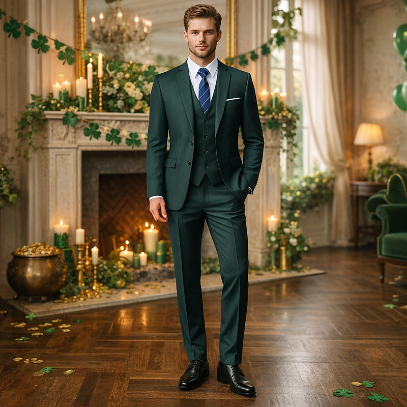 St.Patrick 2026 Roaring 20s 1920s Three Piece Suit Suit Trousers The Great Gatsby Fancy Dress Men's Kings Day Masquerade Party Wedding Masquerade Adults' Coat Vest Pants