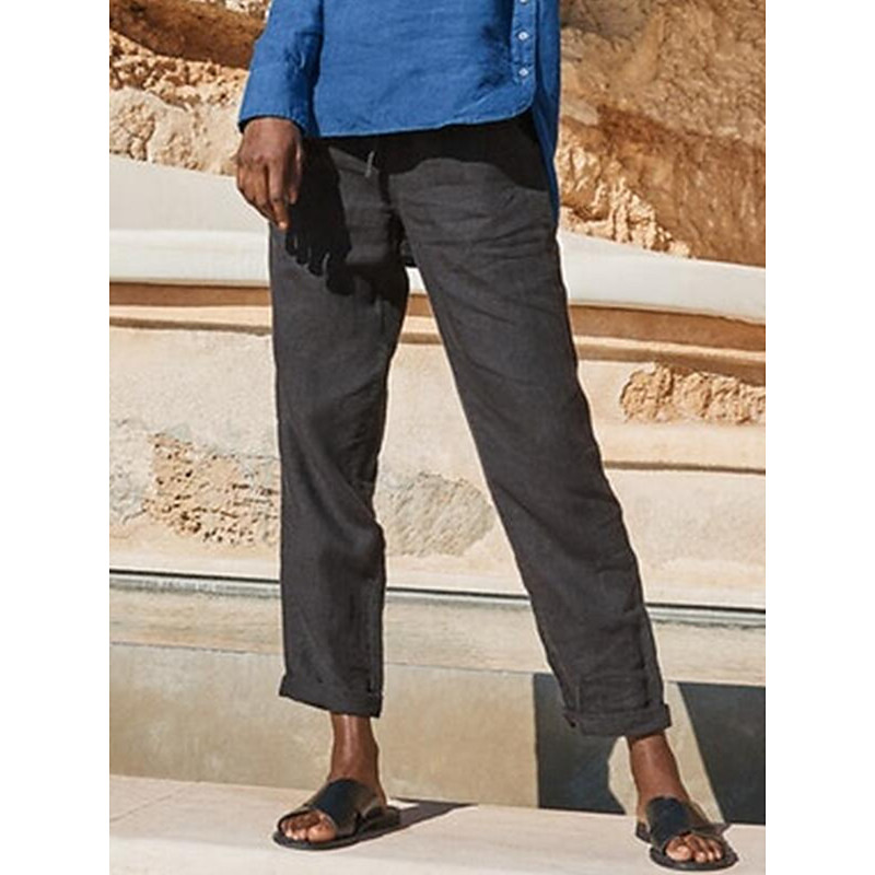 Men's Linen Pants Trousers Summer Pants Beach Pants Drawstring Embroidered Pocket Plain Comfort Breathable Vacation Daily Holiday Hawaiian Boho Black White