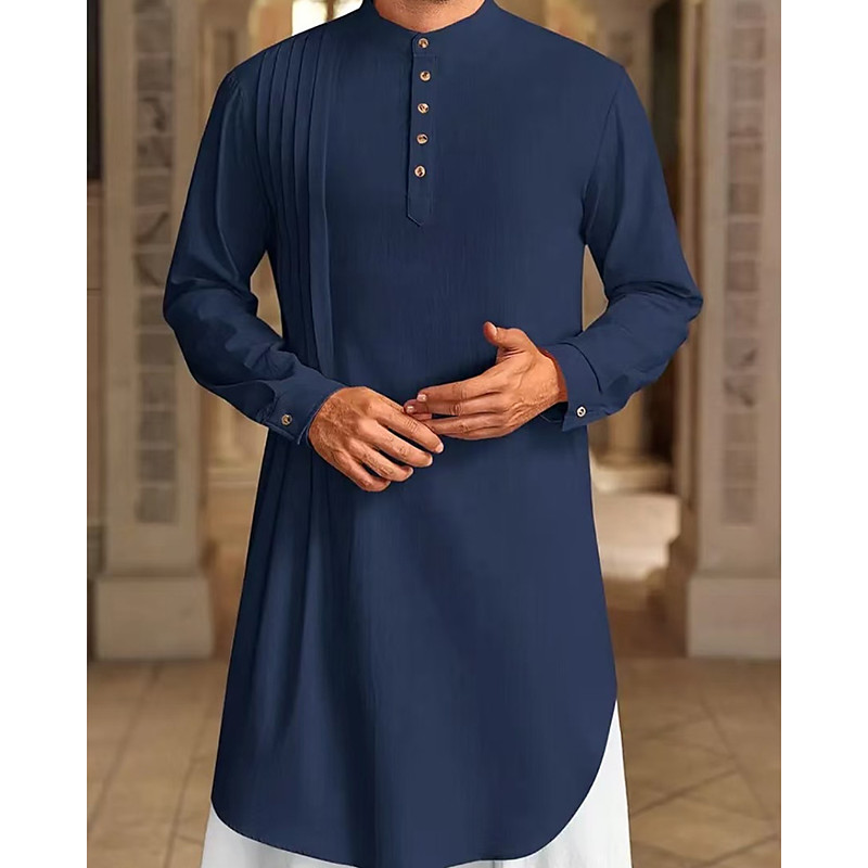 Men's Loungewear Nightgown Nightshirt Plain Stylish Comfort Home Daily Cotton Breathable Stand Collar Long Sleeve Spring Fall Black White