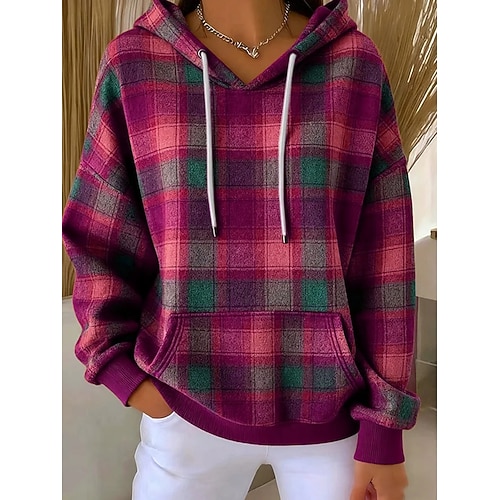 Per donna Felpa con cappuccio Plaid Streetwear Casual Manica Lunga Con Cappuccio Top Regolari Streetwear Ferie Uscire Tasca Nero Verde chiaro Rosa Rosso Blu Autunno Inverno