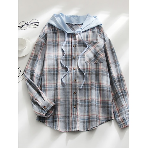Per donna Giacca Casual Giacca con Cappuccio Confortevole Traspirante Tasca Bottoni Casual Plaid Vacanza Streetwear Casuale Abbigliamento quotidiano Monopetto Regolare Con Cappuccio Vestibilit
