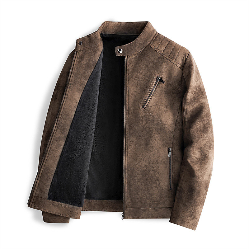Men's Faux Leather Jacket Fleece Jacket Biker Jacket Vintage Leather Jacket Daily Vacation Windproof Warm Pocket Fall Winter Plain Fashion Classic Stand Collar Regular Black Brown Green Jacket