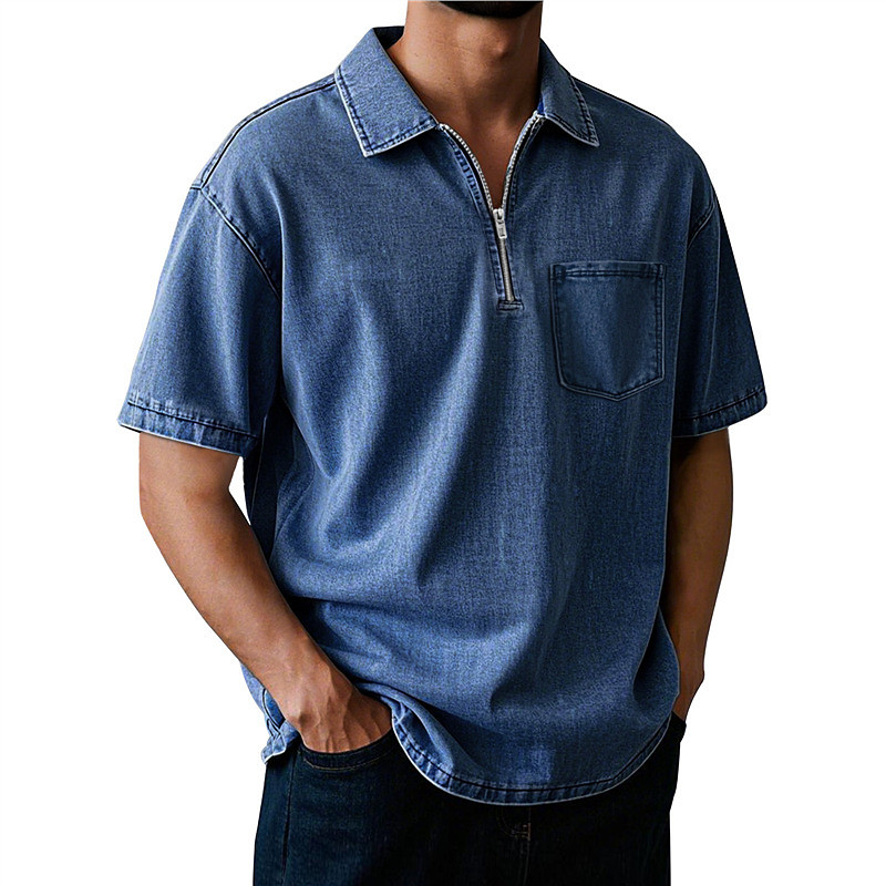 Men's Polo Shirts Quarter Zip Polo Daily Wear Date Quarter Zip Short Sleeve Fashion Basic Plain Zipper Pocket Summer Regular Fit Black Pink Blue Purple Brown Green Polo Shirts