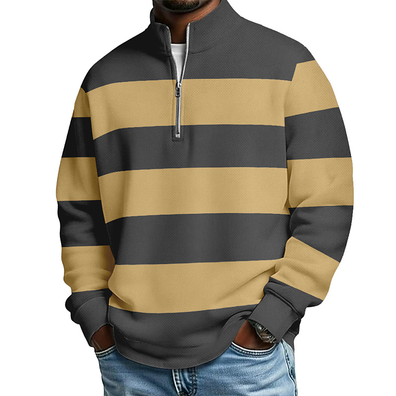 Men's Horizontal Stripes Zip Polo Shirts Long Sleeve Polo Shirts Grandad Collar Casual School Athleisure Holiday Daily Wear 3D Print Quarter Zip Polo Spring Fall Blue Brown Green