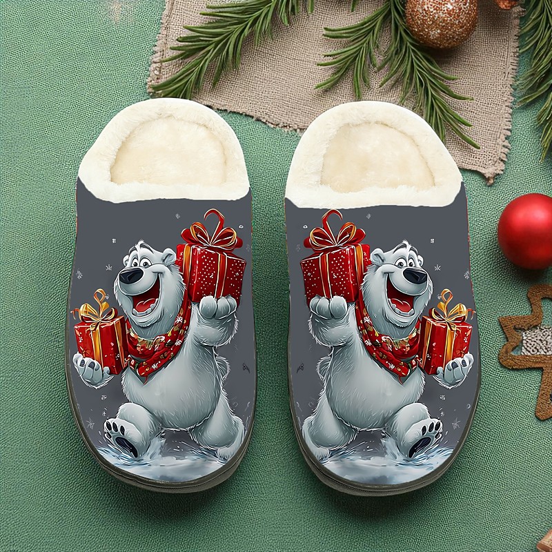 Men's Funny Christmas Slippers - Cute Rabbit Printed Warm Plush Slippers for Christmas Eve, Relaxing at Home and Gift Giving