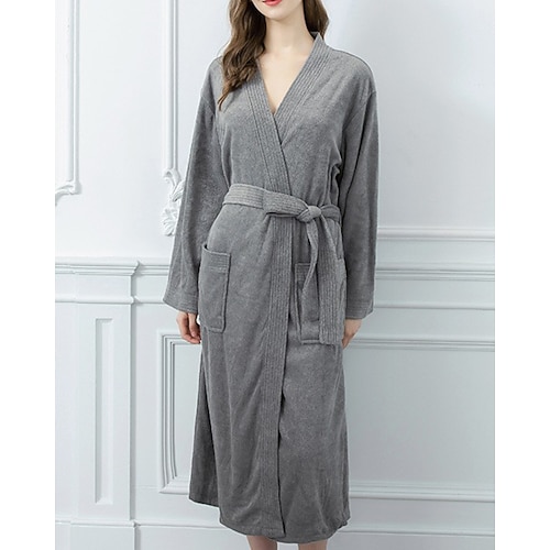 Per donna Pigiama Accappatoio Flanella Moda Casual Colore Puro Tasca Casa Da letto Manica Lunga Scollo a V Bianco Rosa Grigio Autunno Inverno Vestibilità su misura