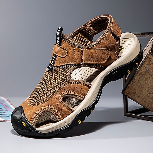Sandali da pescatore da uomo marroni a punta chiusa, leggeri e comodi, ideali per passeggiate all'aperto, vacanze, tempo libero estivo, attività quotidiane e uno stile casual e rilassato.