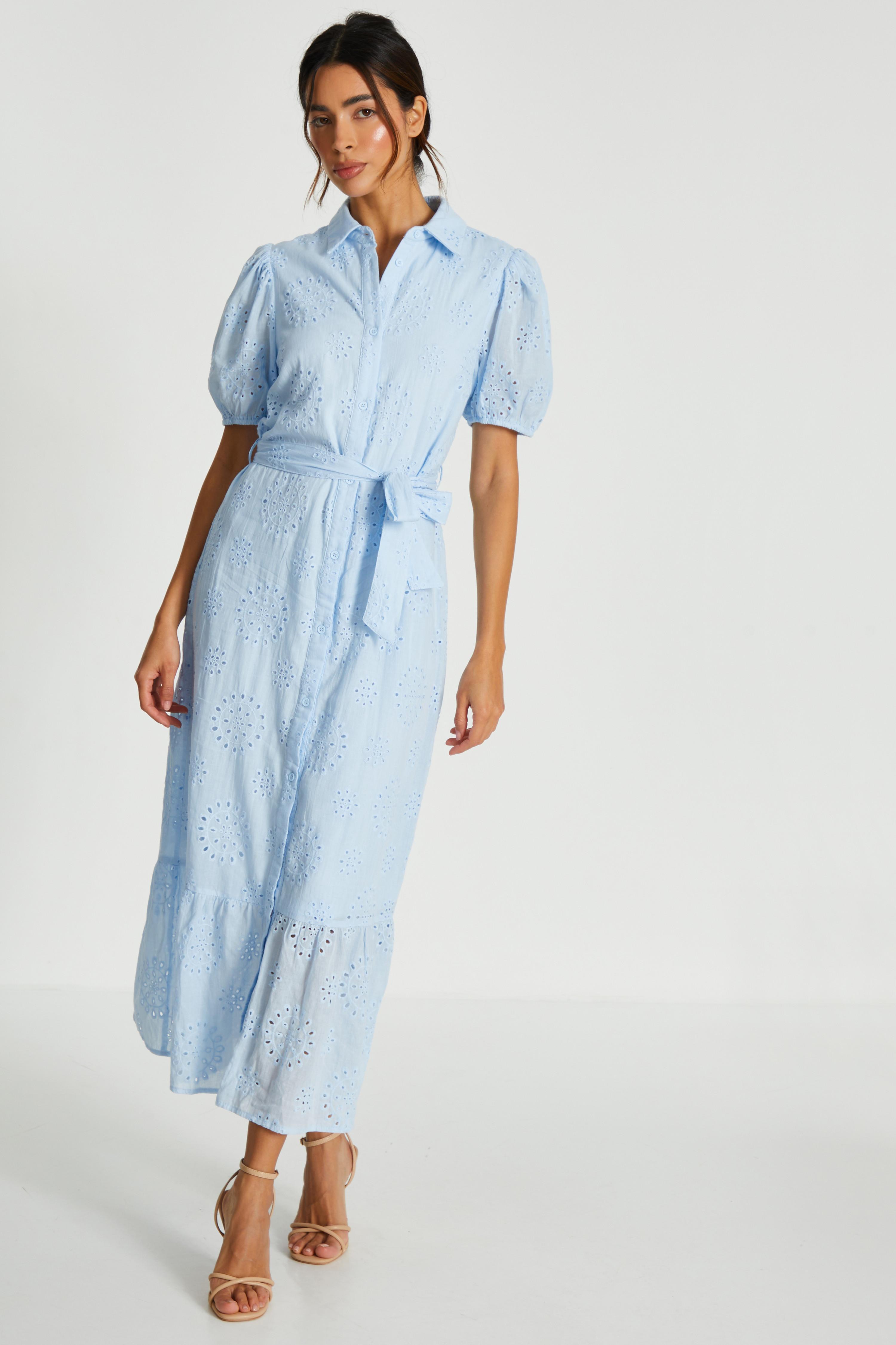 Quiz Womens Blue Embroidered Midaxi Shirt Dress - Size 14 UK | Quiz Sale | Discount Designer Brands