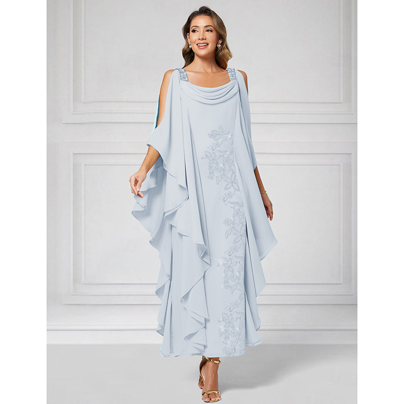 Sheath Column Ankle Length Party Dress Cocktail Dress Wedding Guest Dress Mother of the Bride Dress Half Sleeve Boat Neck Elegant Luxurious Sparkle Shine Wedding Guest Chiffon with Beading Tier
