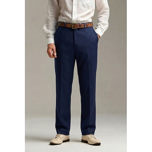 Uomo Cotone Lino Pantaloni Eleganti Pantaloni casual Quotidiano Ufficio Neutro Moda Casual Nero Bianco Blu marino scuro Tinta unica Vestibilità su misura Lungo Inelastico