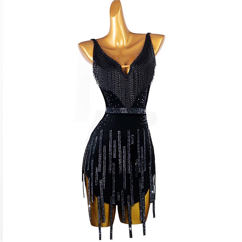 Women's Black Tassel Dance Wear Dance Dress Performance Wear