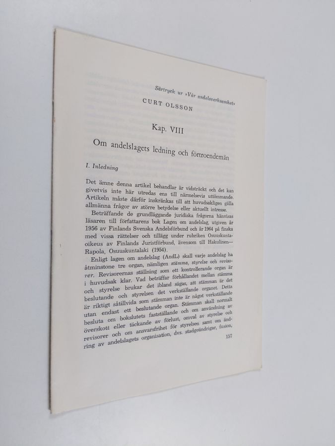 Curt Olsson : Kap. VIII : Om anderslagets ledning och förtroendemän (Särtryck ur "Vår andelsverksamhet")