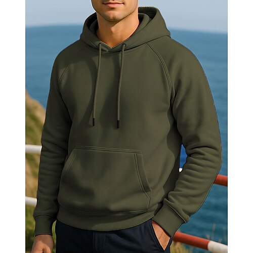 Per uomo Felpa casual Felpa con cappuccio con tasche Manica Lunga Top Athleisure Autunno Tinta unita Di tendenza All'aperto Viaggio Corsa abbigliamento sportivo Abbigliamento sportivo Nero Giallo