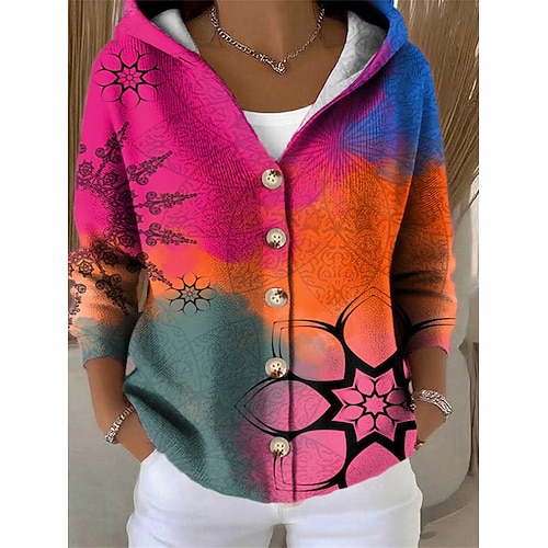 Per donna Felpa Cardigan Elegante Streetwear Quotidiano Tinta unica Floreale Grafico Con Cappuccio Bottoni Lavorato a maglia Stampato Manica Lunga Top Regolari Maglia Quotidiano Casa All'aperto Blu