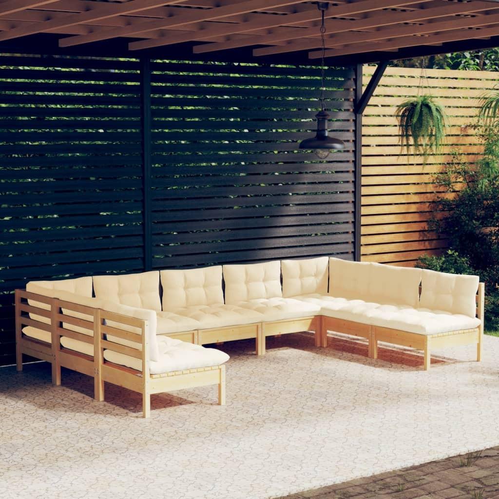 Loungesæt til haven 11 dele med hynde massivt akacietræ