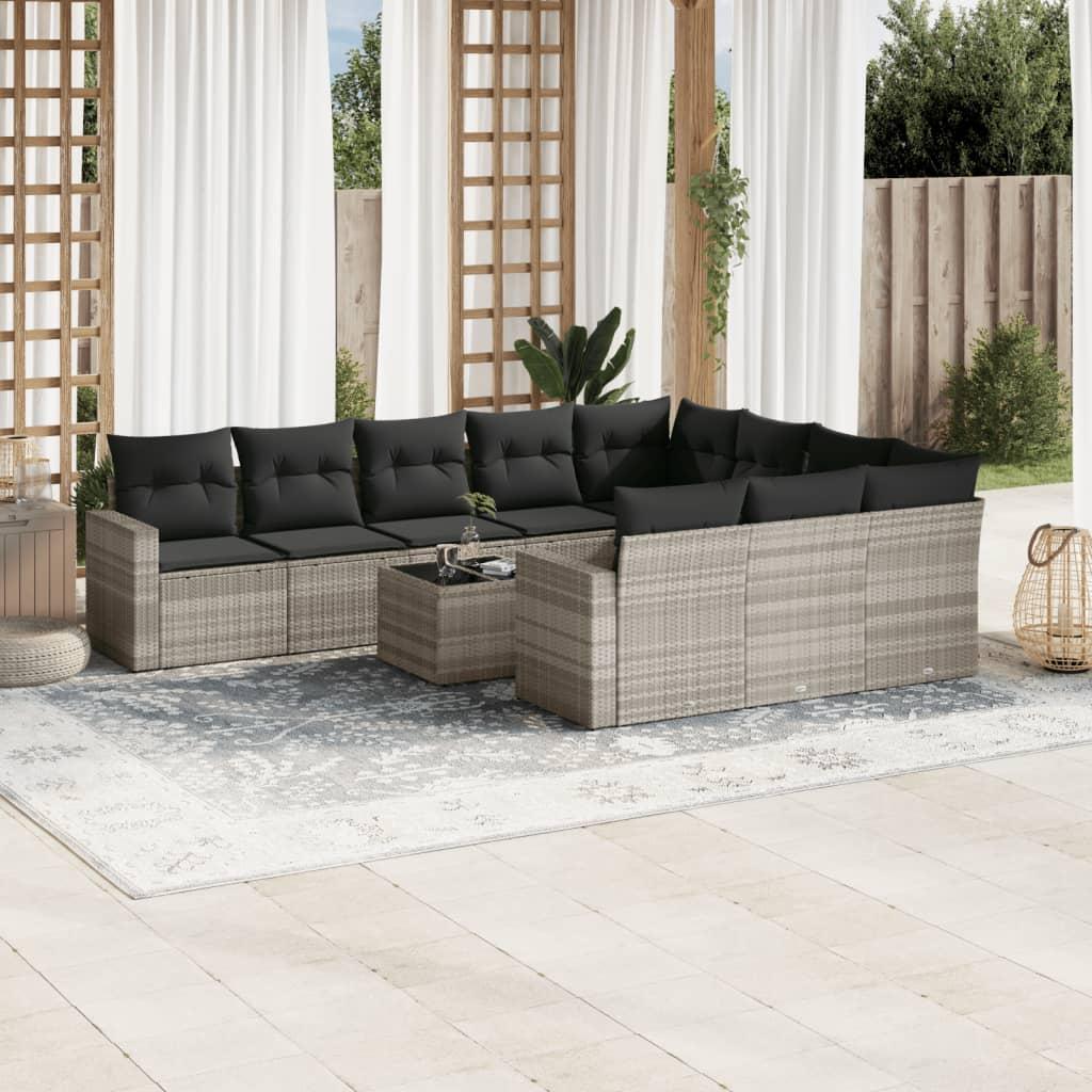 Loungesæt til haven 11 dele med hynder polyrattan grå