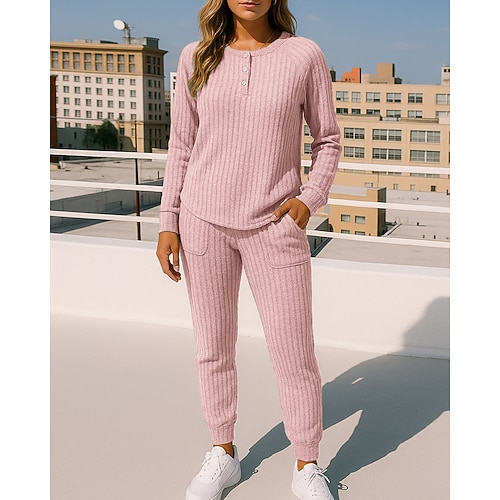 Per donna Tuta da 2 pezzi Set di tute da ginnastica Abbigliamento sportivo con tasca A righe Completo Abbigliamento Autunno Rosa scuro Bianco Lavoro All'aperto Viaggio Leggero Di tendenza Manica Lunga